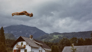 Alter von 8 oder 9 Jahren im Freibad von Bad Goisern, wie er vom Sprungturm